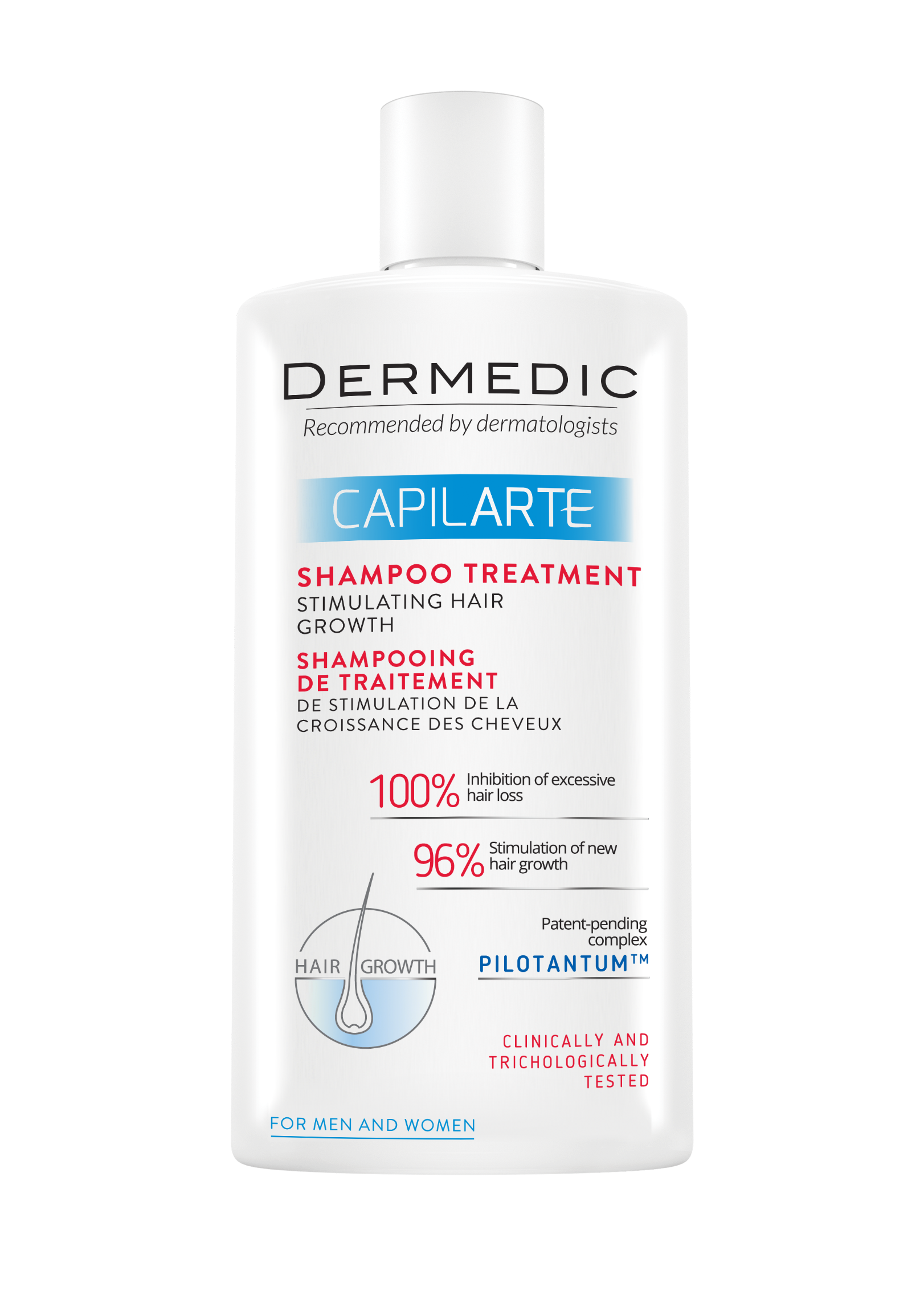 Capilarte šampon - tretman za stimulaciju rasta kose preporučuje se osobama koje pate od prekomjernog gubitka kose različitih etiologija, uključujući gubitak kose uzrokovan genetskim ili hormonalnim uzrocima.